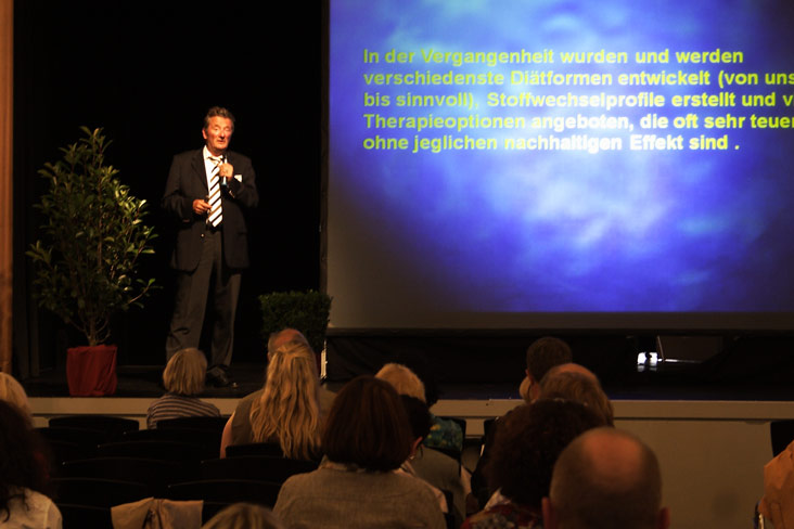 Den Abschluss machte Dres. Reinhard Hauss aus Eckernförde mit einem Thema, welches eigentlich eine wesentlich breitere Schicht der Bevölkerung interessieren müsste: “Wenn Darmbakterien dick machen - was dann ?!”